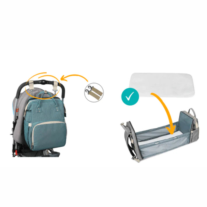Mit unserer innovativen Windeltasche haben Sie alles, was Sie für Ihr Baby in einer Tasche brauchen. Egal ob Sie Besorgungen machen oder auf Reisen sind, Sie können sich darauf verlassen, dass Sie alles für Ihren kleinen Liebling dabei haben, einschließlich einer bequemen Schlafgelegenheit.