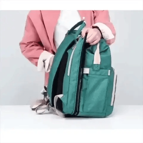 Genug vom tragen? Dieser Rucksack bietet eine Vielzahl von Trageoptionen mit oberen Griffen und einer Rucksacktrageoption sowie Gurten zum anhängen an einen Kinderwagen!